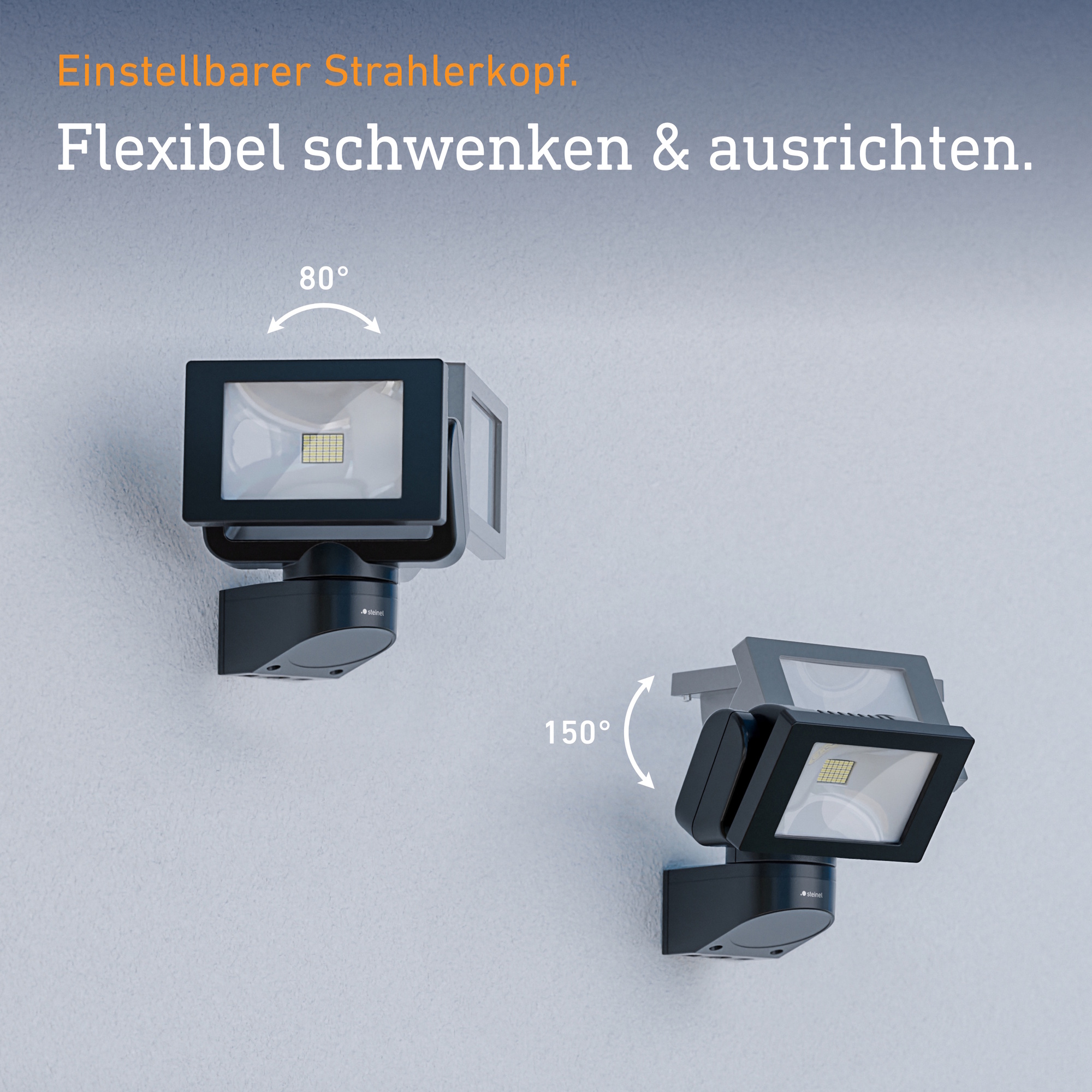 • Strahlerkopf horizontal um 80° und vertikal um 150° schwenkbar