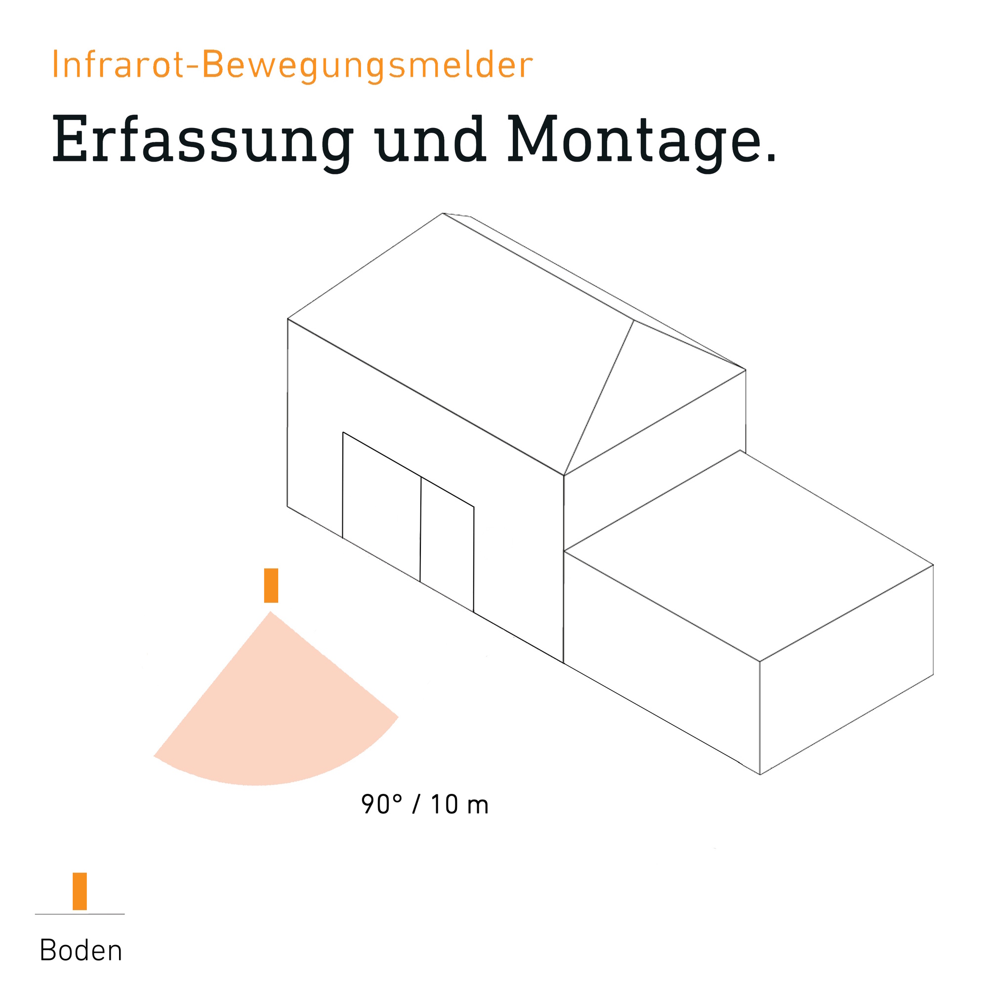Alle Bauteile auf Beschädigungen prüfen. Bei Schäden den LED-Strahler nicht in Betrieb nehmen. Bei der Montage des Geräts ist darauf zu achten, dass es erschütterungsfrei befestigt wird. Geeigneten Montageort auswählen unter Berücksichtigung der Reichweite, der Bewegungserfassung und der Ausrichtung des LED-Strahlers.