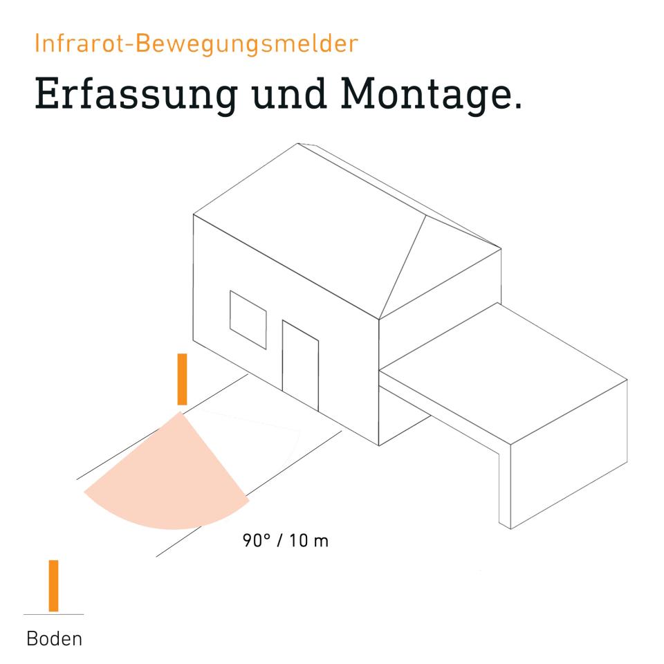 • Automatisches Licht dank 90° Infrarot-Sensor mit bis zu 10 m Erfassung bei Bewegung