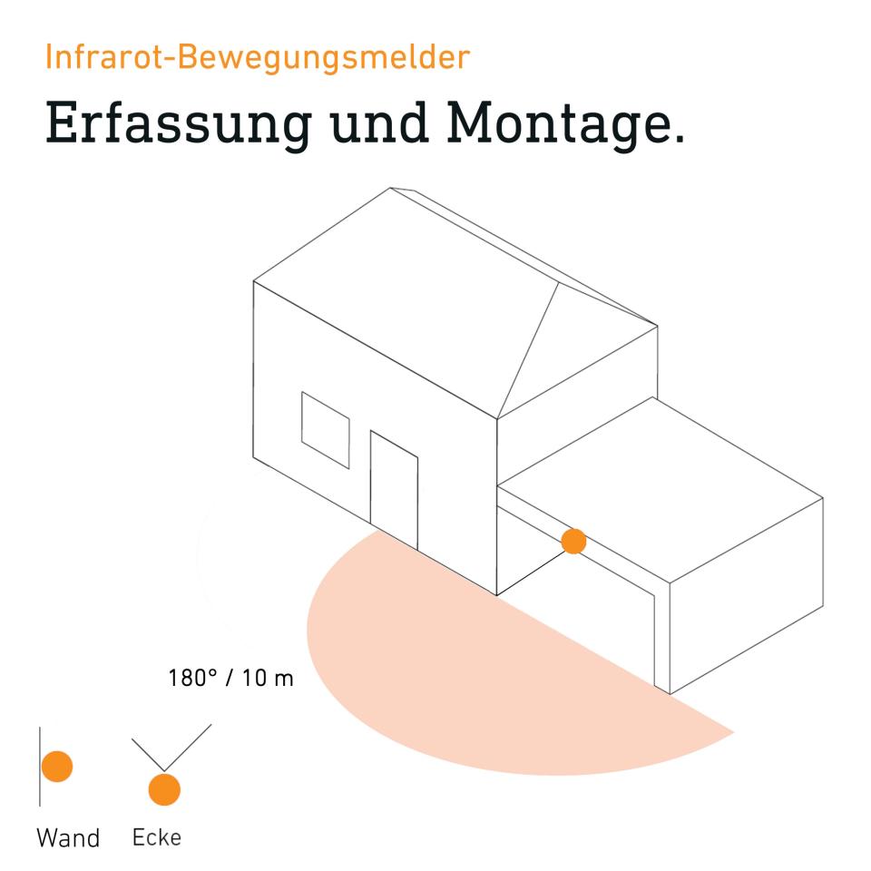 • Automatisches Licht dank 180 ° Infrarot-Sensor mit bis zu 10 m Erfassung bei Bewegung