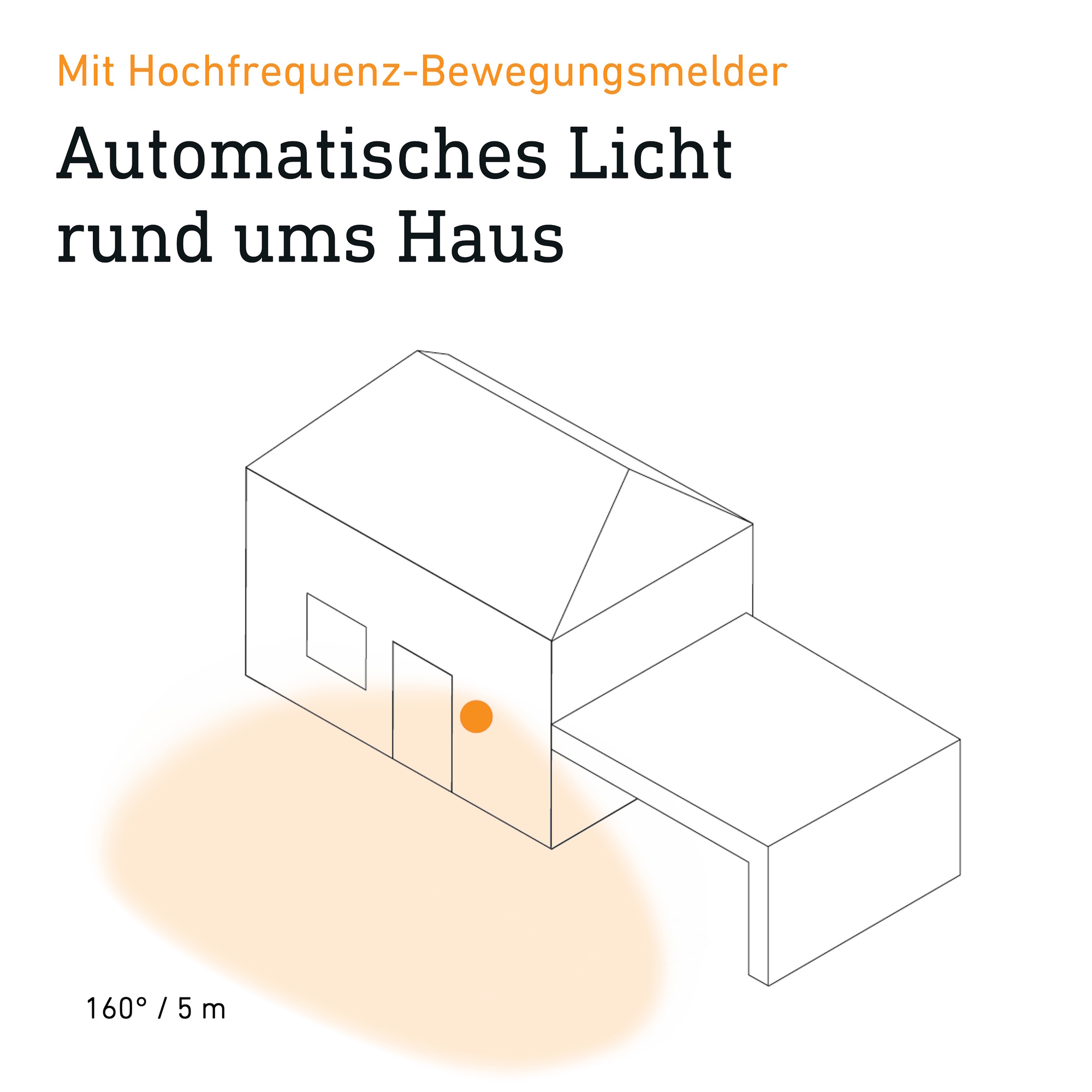• Automatisches Licht dank unsichtbar integriertem 160° Hochfrequenz-Sensor mit bis zu 5 m Erfassung bei Bewegung