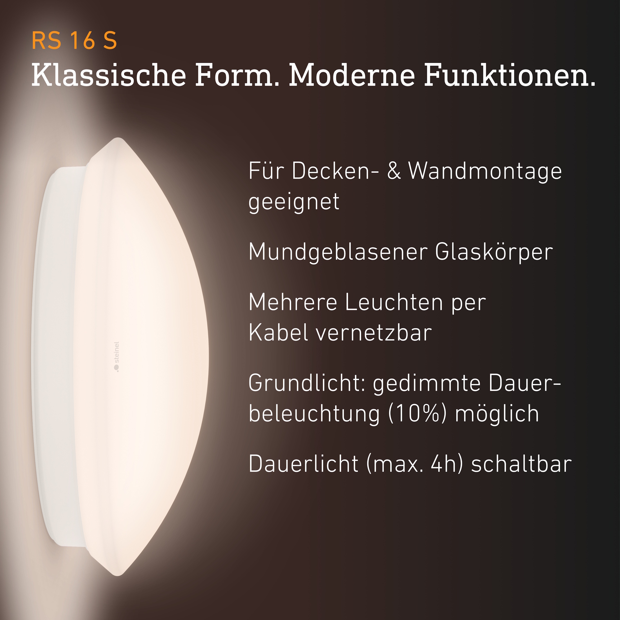 • Als Decken- oder Wandleuchte besonders geeignet für Flure, Treppenhäuser, Gäste-WCs oder Kellerräume