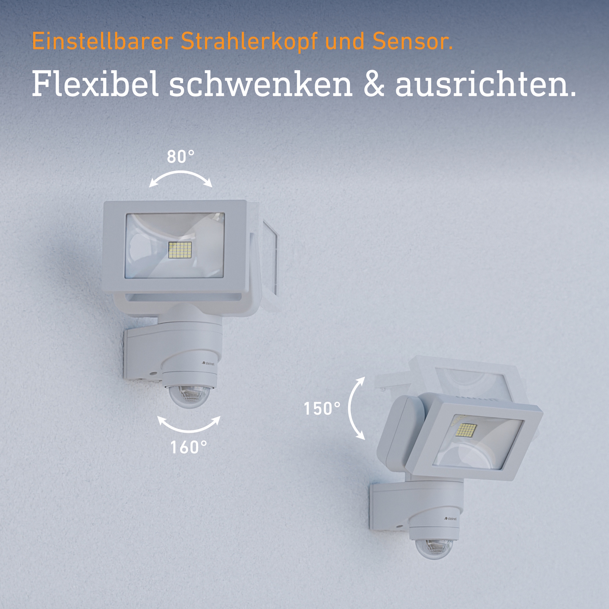 • Foco con detector de movimiento con robusto cabezal de proyección de aluminio y óptima difusión de la luz gracias al reflector cerámico