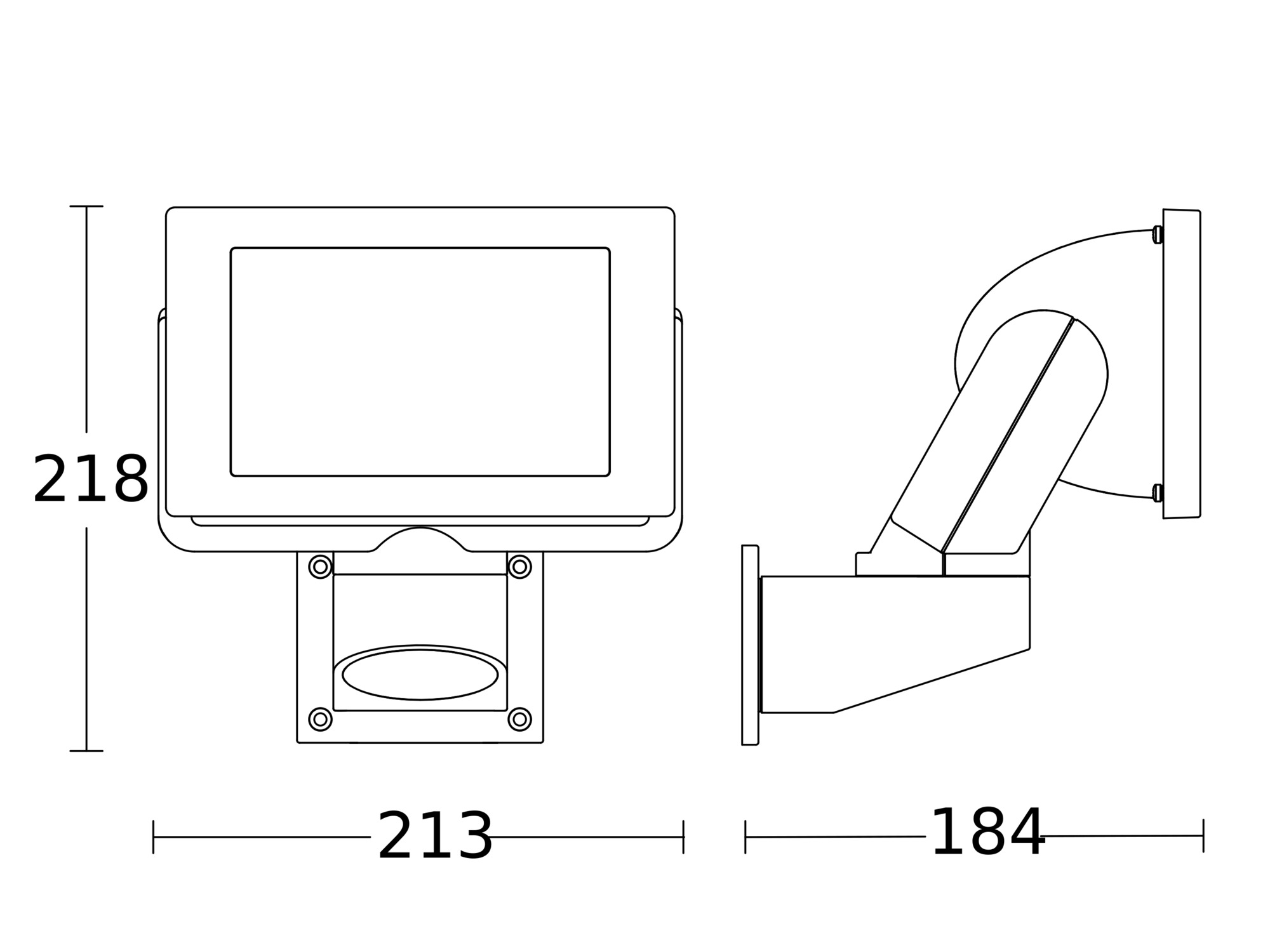 Foco LED: – Foco LED con/sin sensor apto para el montaje en la pared en zonas exteriores. Foco LED con cámara: – Foco LED con sensor apto para el montaje en la pared en zonas exteriores. – Cámara e interfono integrados.