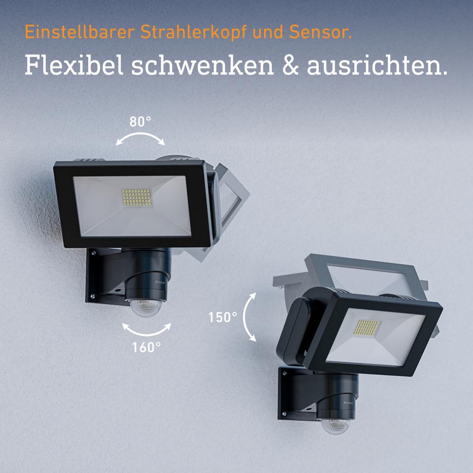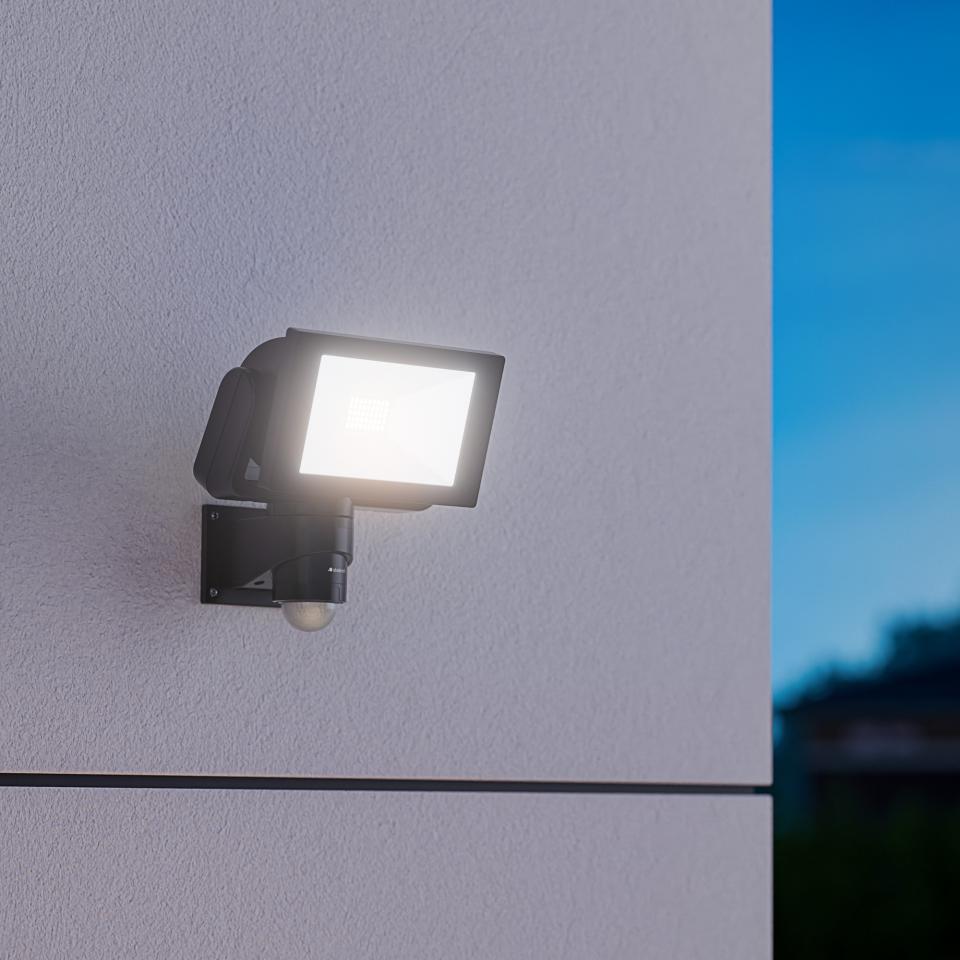 • Faretto con rilevatore di movimento con testa del faretto in alluminio robusto e diffusione ottimale della luce grazie al riflettore in ceramica