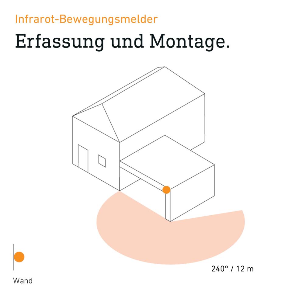 • Luce automatica grazie al 240 ° Sensore a infrarossi con rilevamento del movimento fino a 12 m