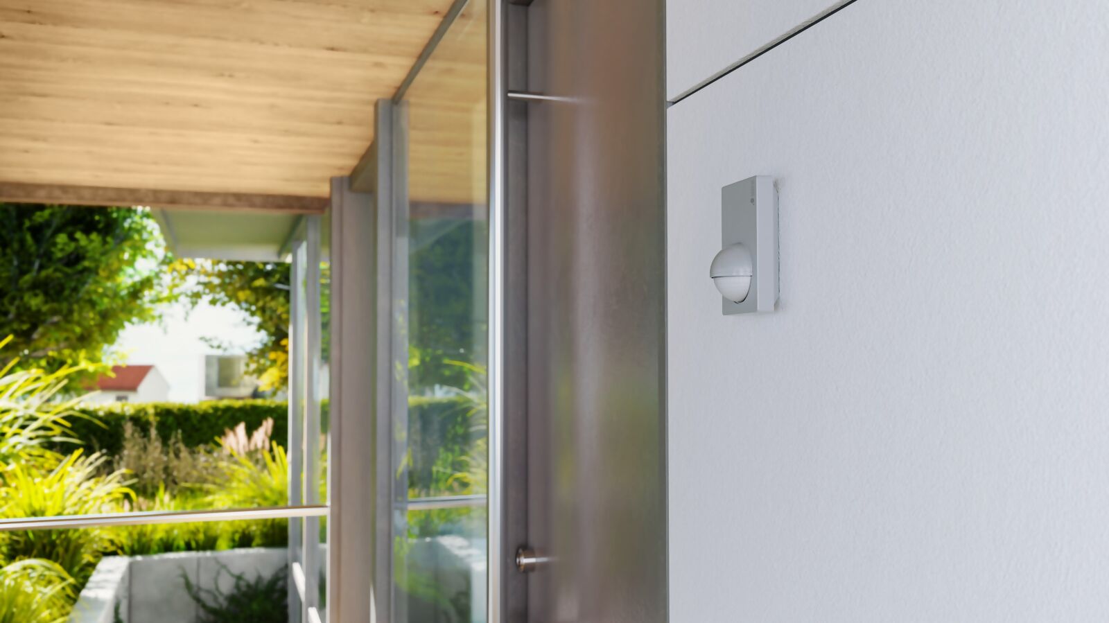 • Rilevatore di movimento a infrarossi con angolo di rilevamento di 180° e raggio di rilevamento fino a 12 m
