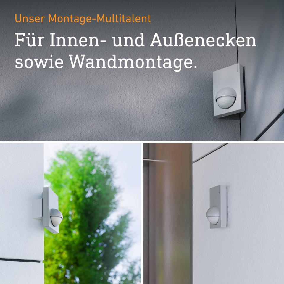 • Per il montaggio a parete o ad angolo (con staffa a parete angolare opzionale) all'interno e all'esterno (IP 54), ideale per il monitoraggio di grandi proprietà e aree esterne, ad esempio facciate di case e vialetti